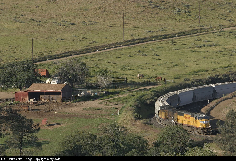 A southbound UP passes horses at the loop