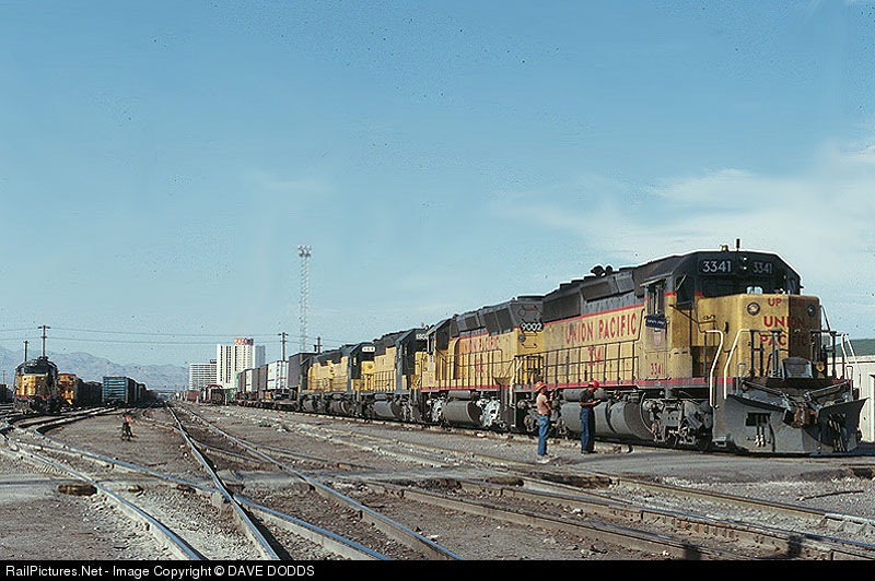 | UP SD40-2 #3341 on UP W/B SUPER VAN @ UP'S Old Las Vegas NV UP yards Nov 18,1980 |