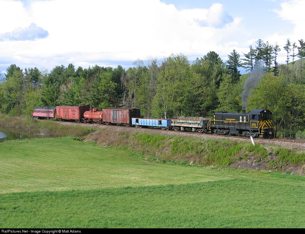 | CACV 3051, power for the Bridge Line Hostorical Society's chartered "mixed" train, smokes it up at milepost 7. |