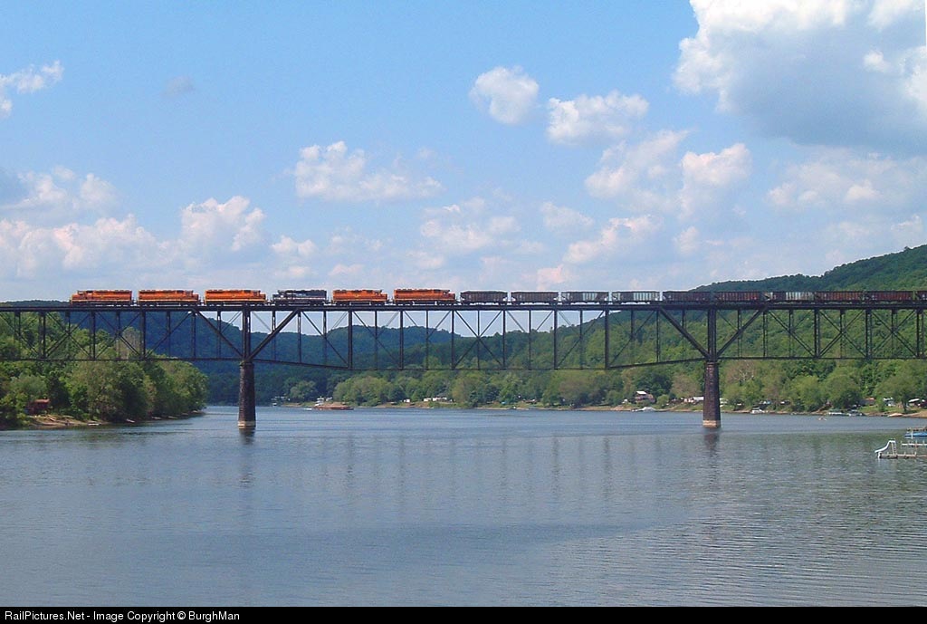 A southbound B&P coal train crosses the Allegheny River at Mosgrove