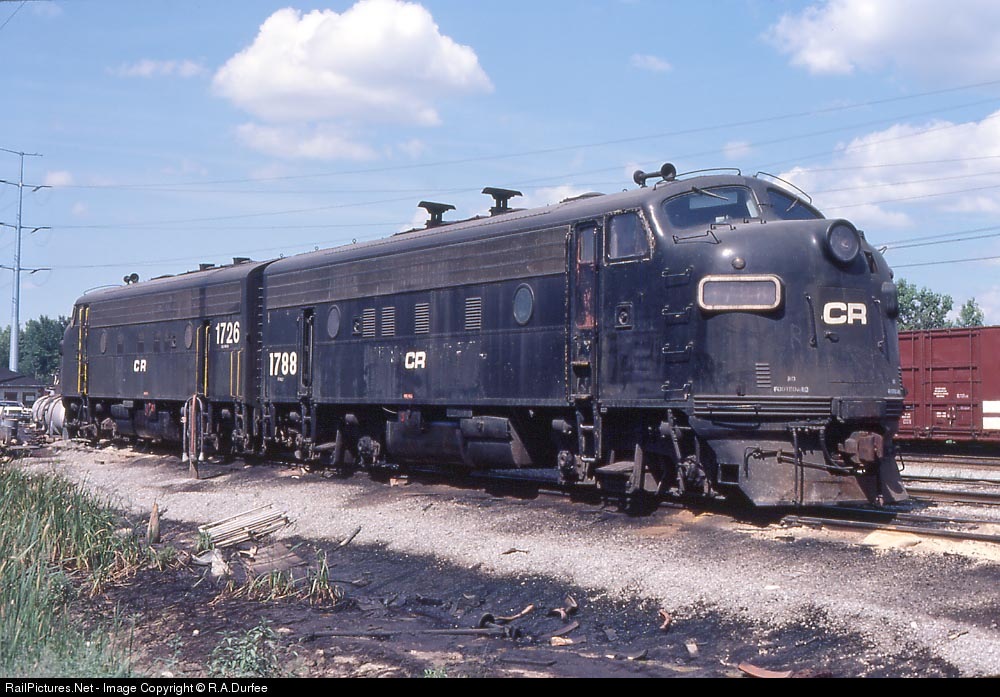 | The last pair of active F's on Conrail rest between runs, their days numbered. |
