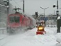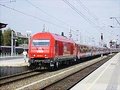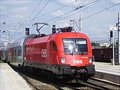 | Arriving at Wien Meidling - notice the Austria-way of coupling two trains both with locs together and splitting them later on (eloc in the middle of the train set). |