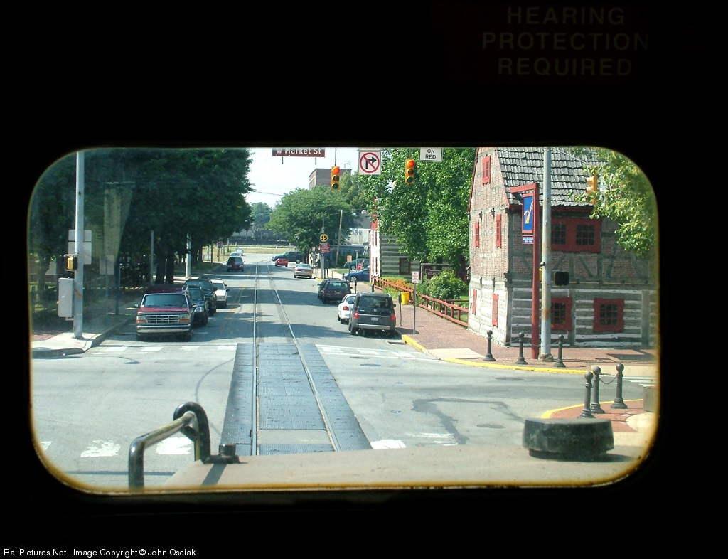 York Railway CF-7's lead a cut of empty salt down Pershing Ave. through rush hour traffic.