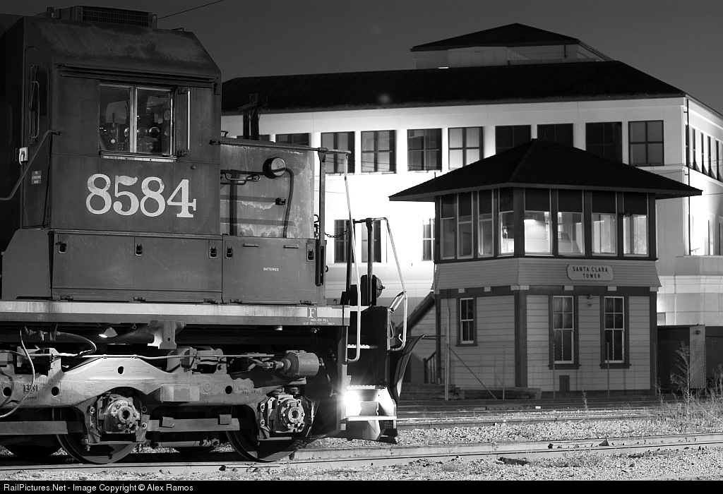 SP 8584 sits in front of the Santa Clara tower, after cuttin off from its train, "The Rock Job". Nikon D70 70-200mm. www.bayarearailroading.com