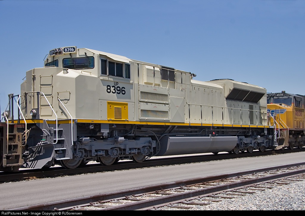 UP 8396, in primer is now UP 1988 the MKT heritage unit.
