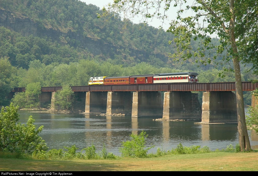 NSHR 2004 leads this passenger special northbound across the west branch of the Susquehanna River.