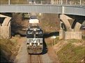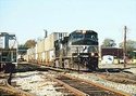 Westbound NS 112 ducks under the new Metrolink flyover.