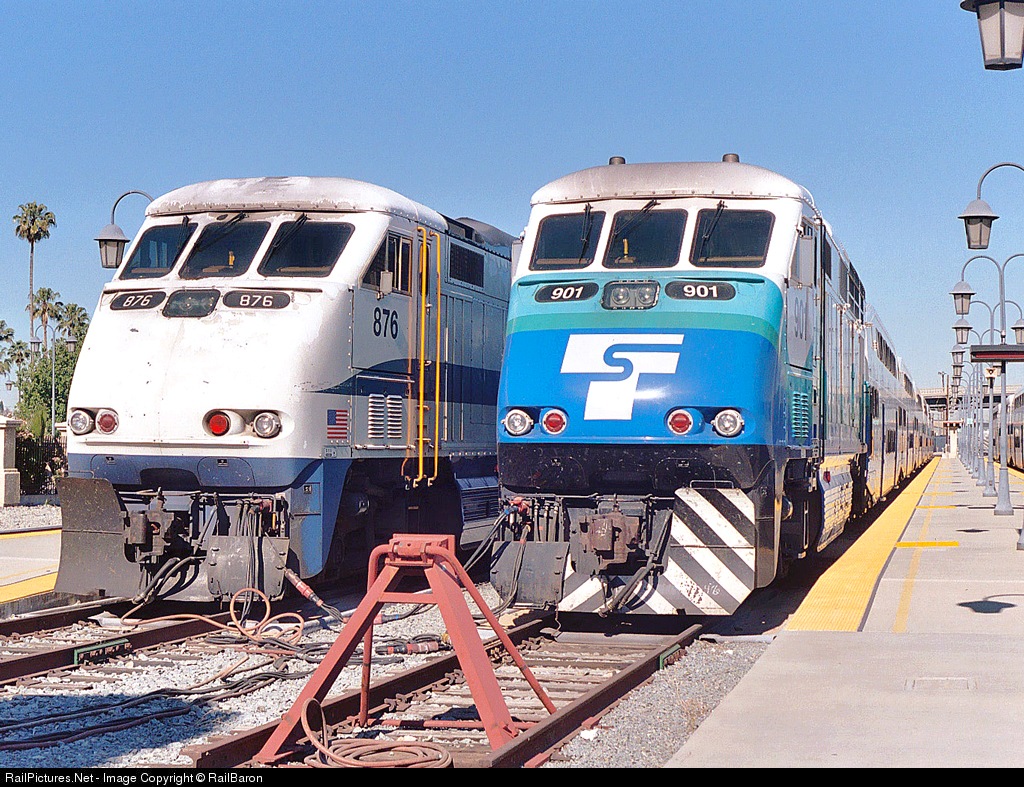 | From from its home in Seattle, Sound Transit 901 sits with Metrolink cousins at San Berdoo. |