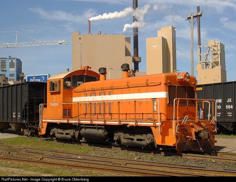 | One of two orange Domtar locos in Nekoosa on a Saturday morning. Bruce's RailRoad Pictures website http://my.coredcs.com/~bbokrlwy/index.html |