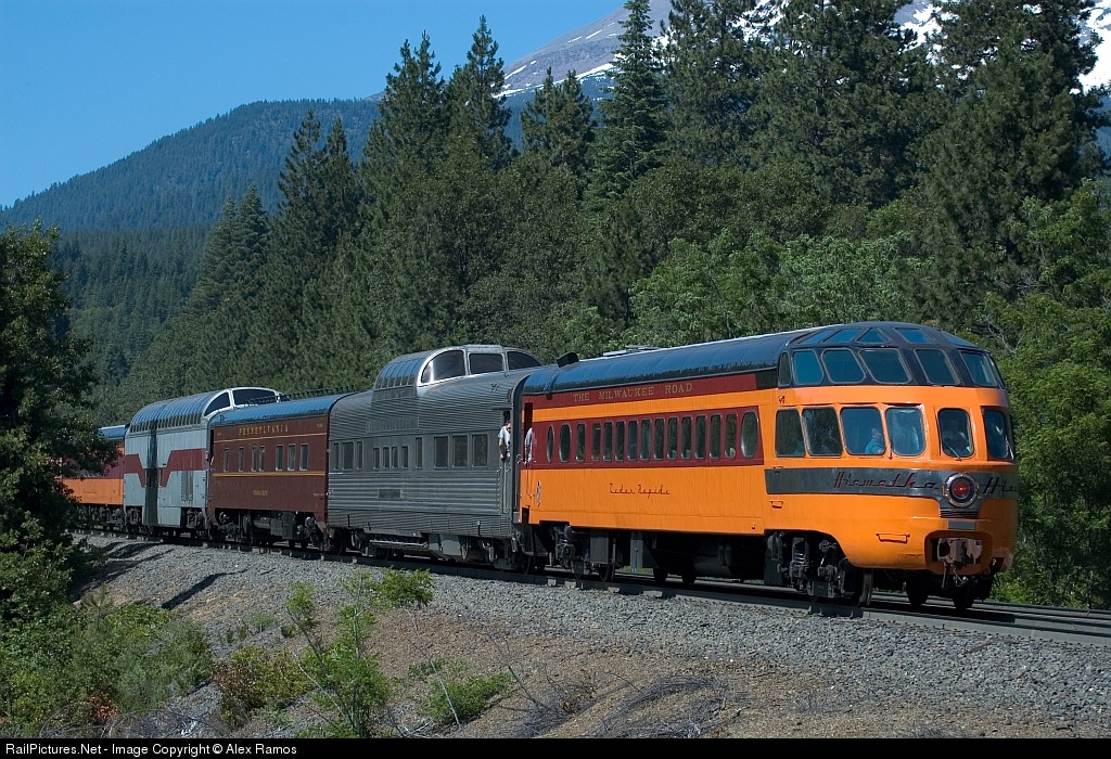 In view is the last 4 cars in consist of the NRHS convention special. There is the ex MILW full dome(which I heard was bought off of Ebay), Colonial Crafts, Silver Lariat, and Cedar Rapids. Nikon D70 70-200mm. bayarearailroading.com