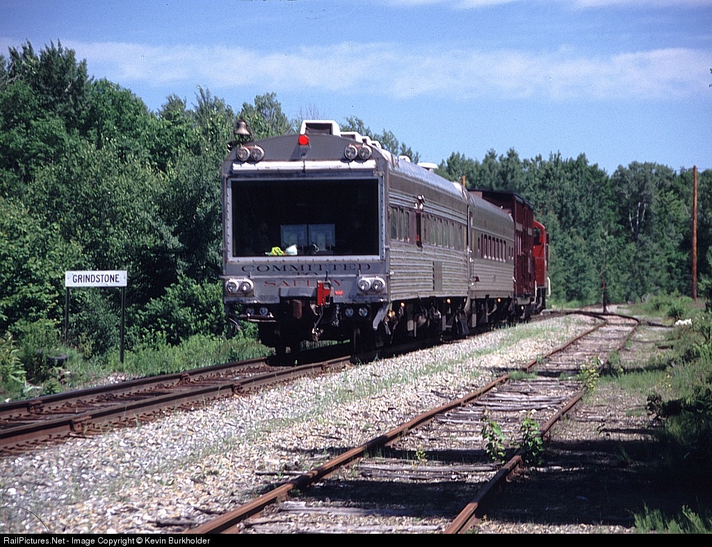 | Existing as a mere station name sign and a small conglomerate of homes along the tracks, Grindstone, Maine hosts a visiting CPR Geometry Train on Montreal Maine & Atlantic's former Bangor & Aroostook trackage. |
