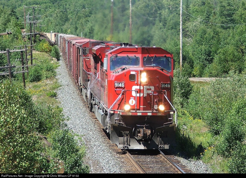 | No work today at Marathon! CP #434-CP 9146, 9512, local, CN Haulage cars, mixed-180 axles @ 15:00 - 42 cars |