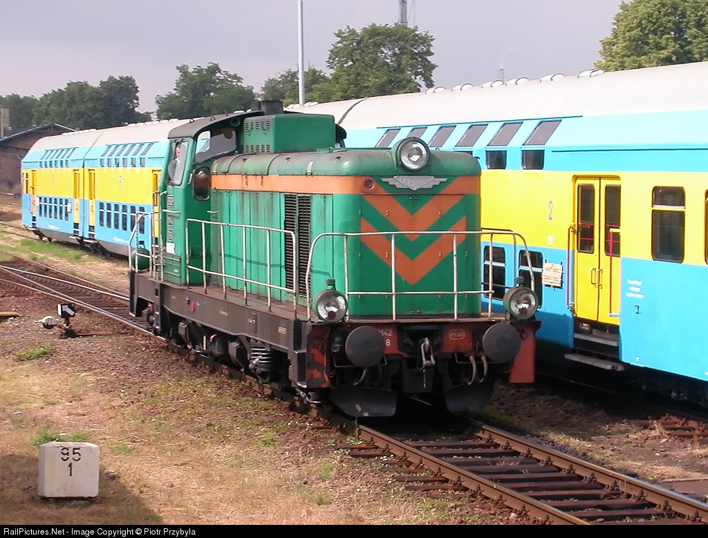 The main switcher at Chojnice station prepares for switching some double-deckers.