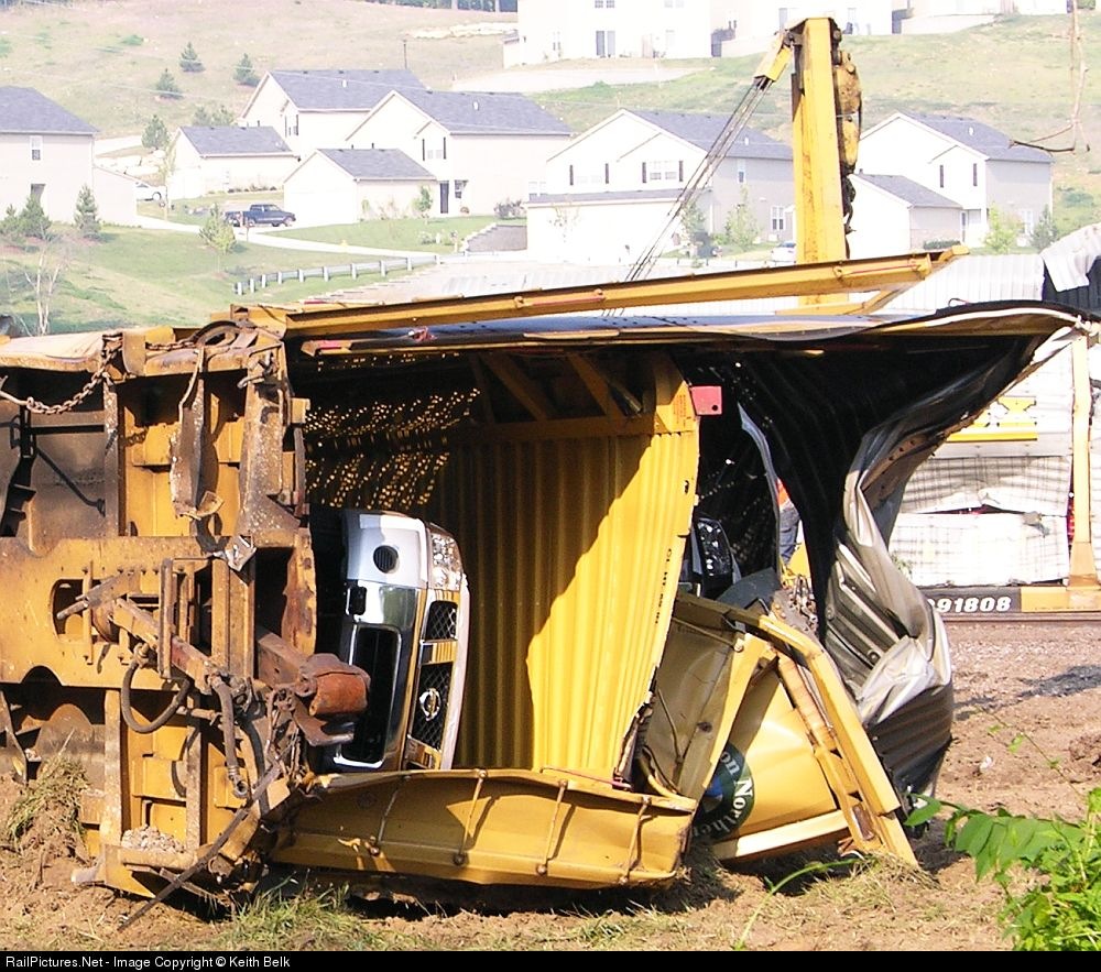 Loaded Northbound racks derail and hit train in the siding on August 1, 2005
