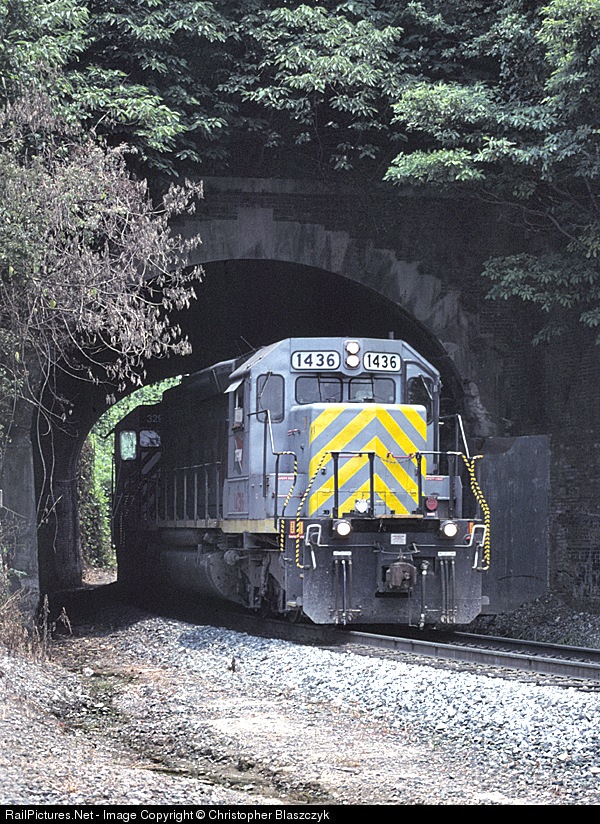 TFM 1436 bursts out of one of two tunnels in downtown Vicksburg, and begins its decent to the yard and the Mississippi River bridge.