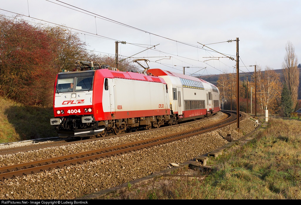 | Brand new dual voltage locomotive CFL 4004 is heading with passenger train 4940 from Wasserbillig to Luxembourg-Ville (capital of the small country). |