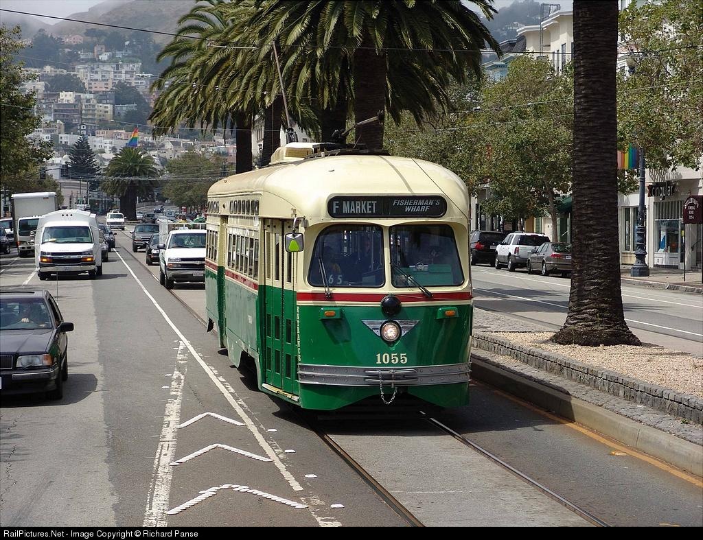 RailPictures.Net Photo: Muni 1055 San Francisco Municipal Railway Streamliner PCC Streetcar at San Francisco, California by Richard Panse