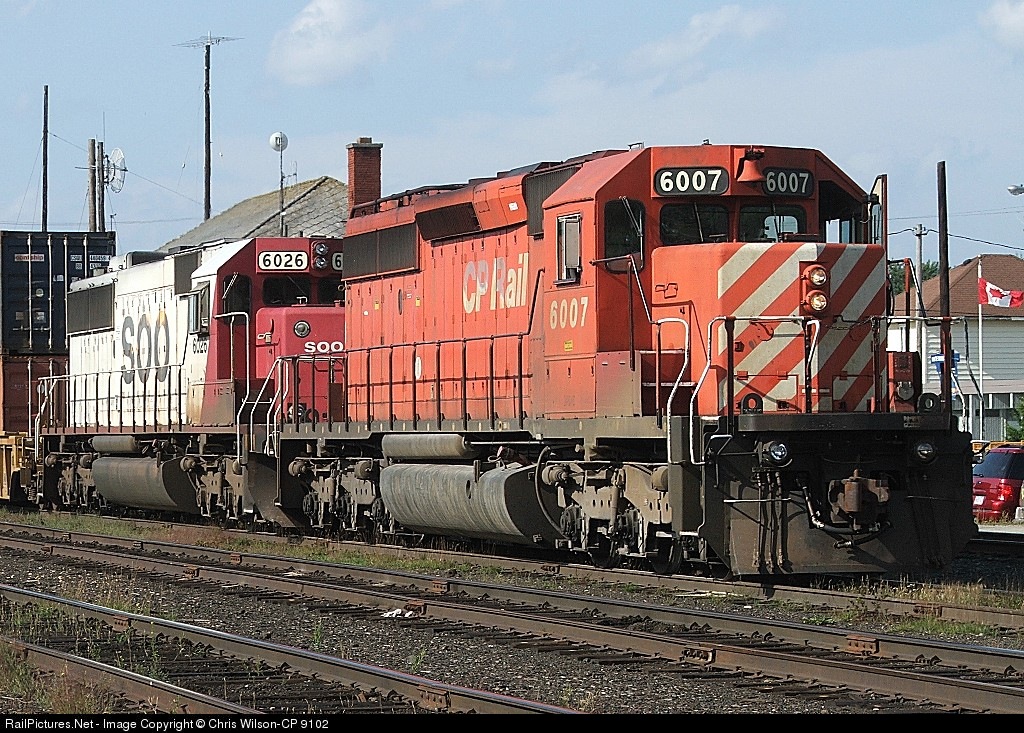 CP GMDD SD40-2 6007 & SOO EMD SD60 6026 pause in White River, Ontario