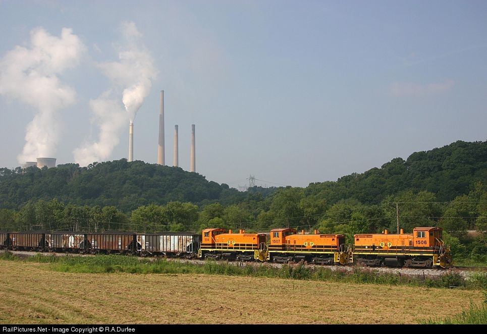 | B&P 1506,1507,and 1514 are tied onto the coal for the Homer City generating station seen in the background |