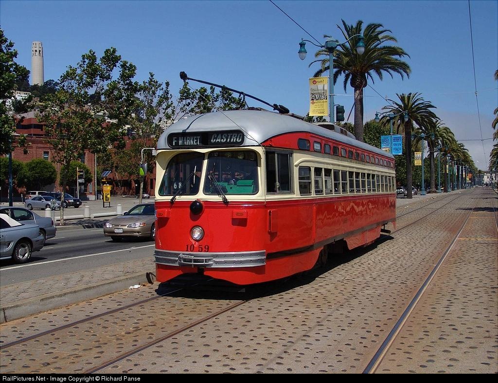 RailPictures.Net Photo: Muni 1059 San Francisco Municipal Railway Streamliner PCC Streetcar at San Francisco, California by Richard Panse
