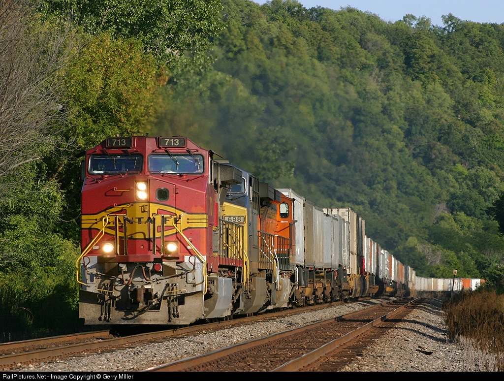 RailPictures.Net Photo: BNSF 713 BNSF Railway GE C44-9W (Dash 9-44CW) at Potosi, Wisconsin by Gerry Miller