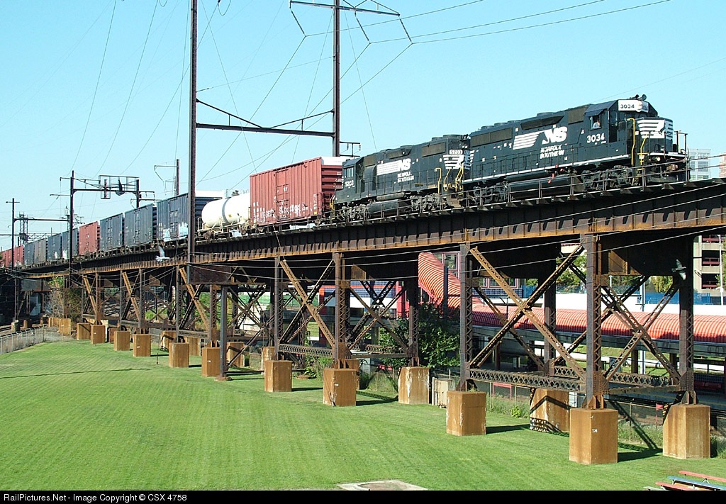 RailPictures.Net Photo: NS 3034 Norfolk Southern EMD GP40-2 at Philadelphia, Pennsylvania by CSX 4758