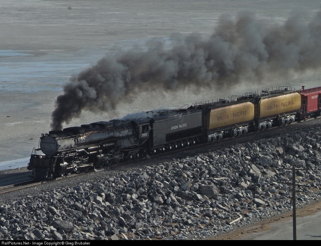 RailPictures.Net Photo: UP 3985 Union Pacific Steam 4-6-6-4 at Great Salt Lake, Utah by Greg Brubaker