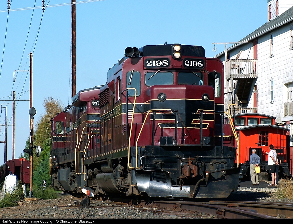 NH&I GP30 2198 and C30-7 7087 have uncoupled from their train and are backing into the siding to allow NH&I 40 to couple onto this end of the train for a runby.