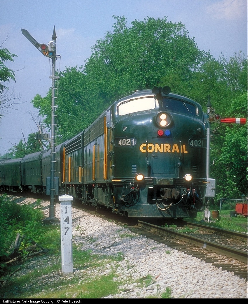 Album created by member Ellis Simon | Album Views: 4,044 | | Conrail's business train, decked out in Pullman green and deluxe gold and hauled by as many as three EMD E-8s, was a class act. |