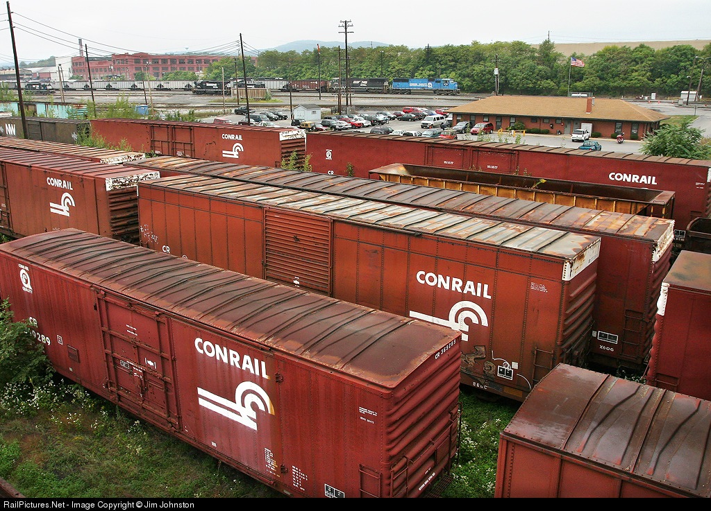 Reminders of Conrail's presence are everywhere as in the distance a CR Blue leader coal train waits for crew at Altoona.