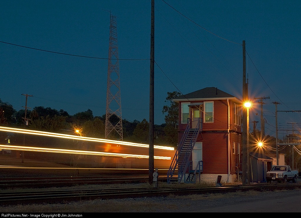MARC commuter train P881 speeds past WB Tower bringing home commuters from Washington DC at the end of a day.
