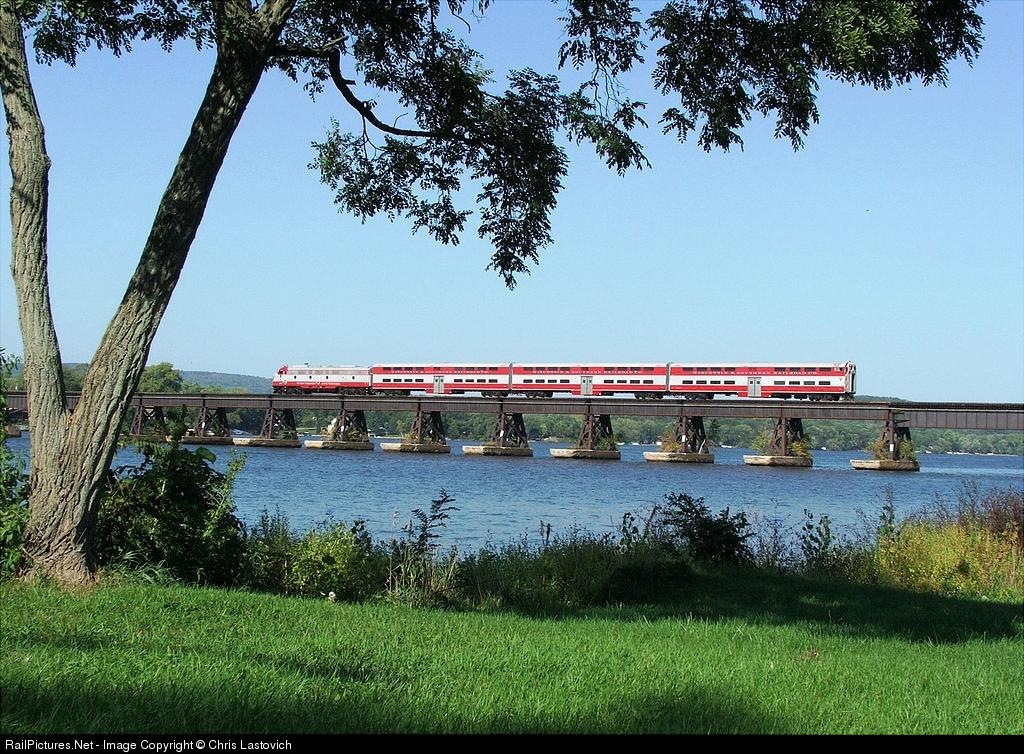 WSOR Employee Special crosses the Wisconsin River with the Railroad's recently rebuilt ex CNW Bi-Levels and historic E9A 10C.