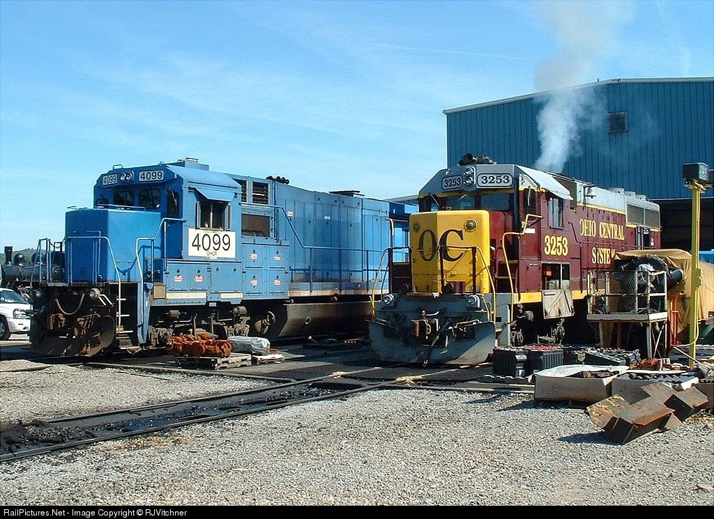 OHCR 3253 smokes it up as she is evaluated for repair on the Morgan Run Pad next to recently aquired B23-7r 4099