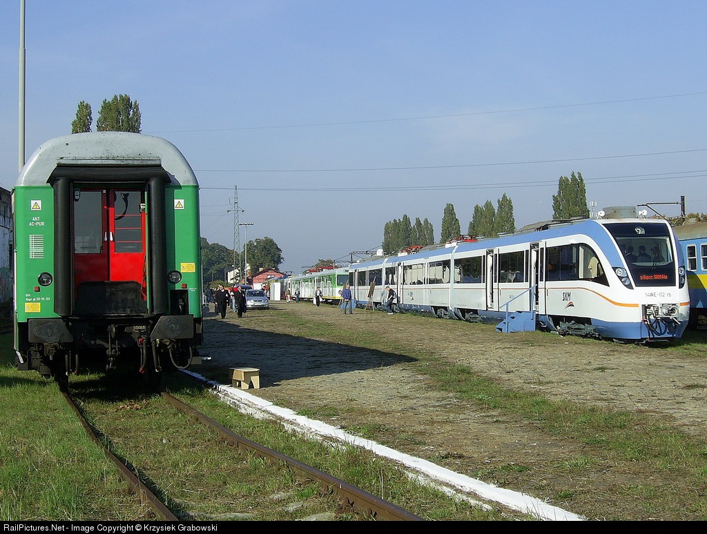 | Exposition of rolling stock at TRAKO 2005 - the biggest railway fair on Poland. From the left: passengers car Brdhnu, EN57 and 14WE. |