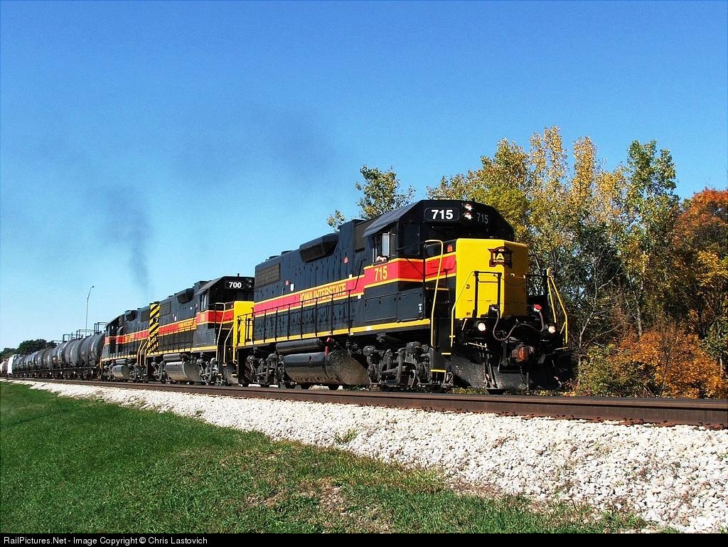 | IAIS 715, garnished with a fairly uncommon Prime 920 air horn, passes some fall foilage on its journey toward the big city. |