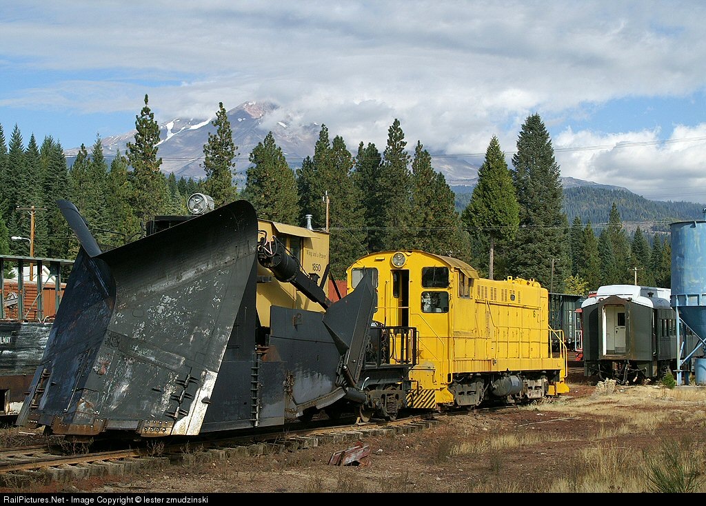 Snow on the peak of Mt. Shasta and the plow that will see plenty of work in the northern California winter. Ex US Steel S12, ready to push.