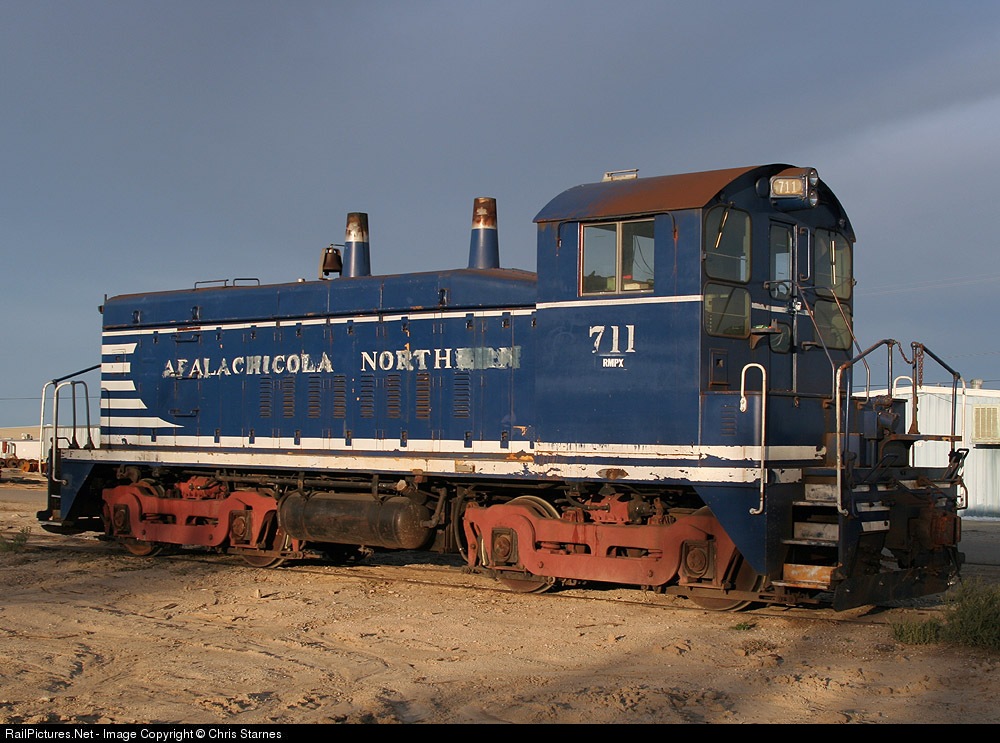 RMPX 711 (ex-AN) SW9 sitting at the Progress Rail facility at Mojave, CA under the last rays of evening sunlight.