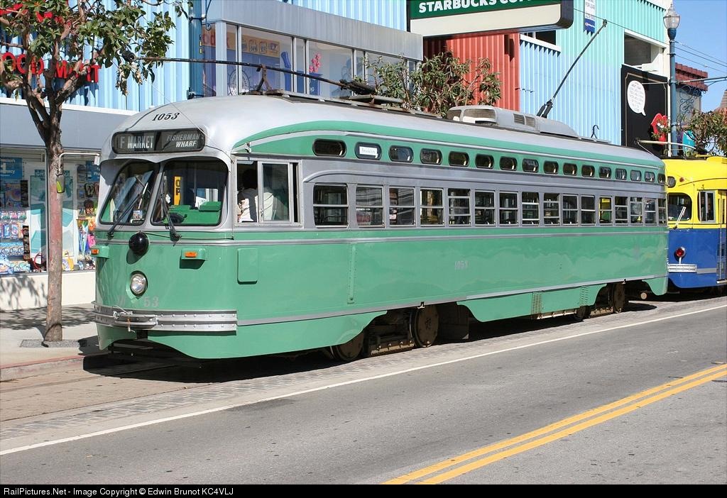 RailPictures.Net Photo: Muni 1053 San Francisco Municipal Railway Streamliner PCC Streetcar at San Francisco, California by Edwin Brunot KC4VLJ