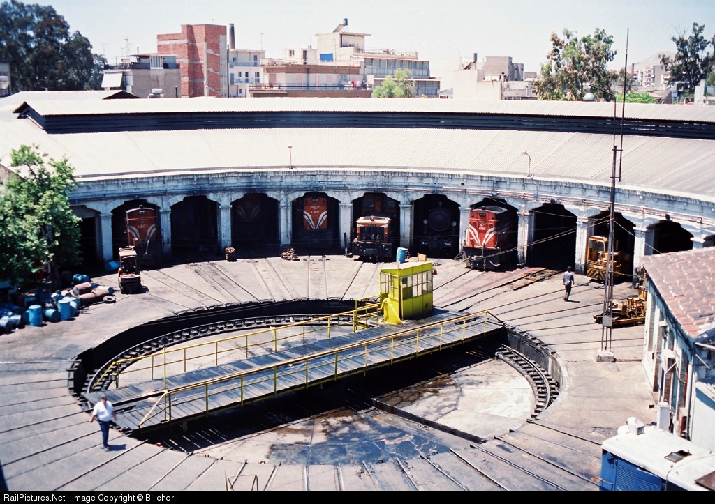 | The central meter gauge roundhouse with some Alcos on it ( A-9107, A-9109, A-9102, A-9110 ) and a steam 2-8-2 engine Vulcan |
