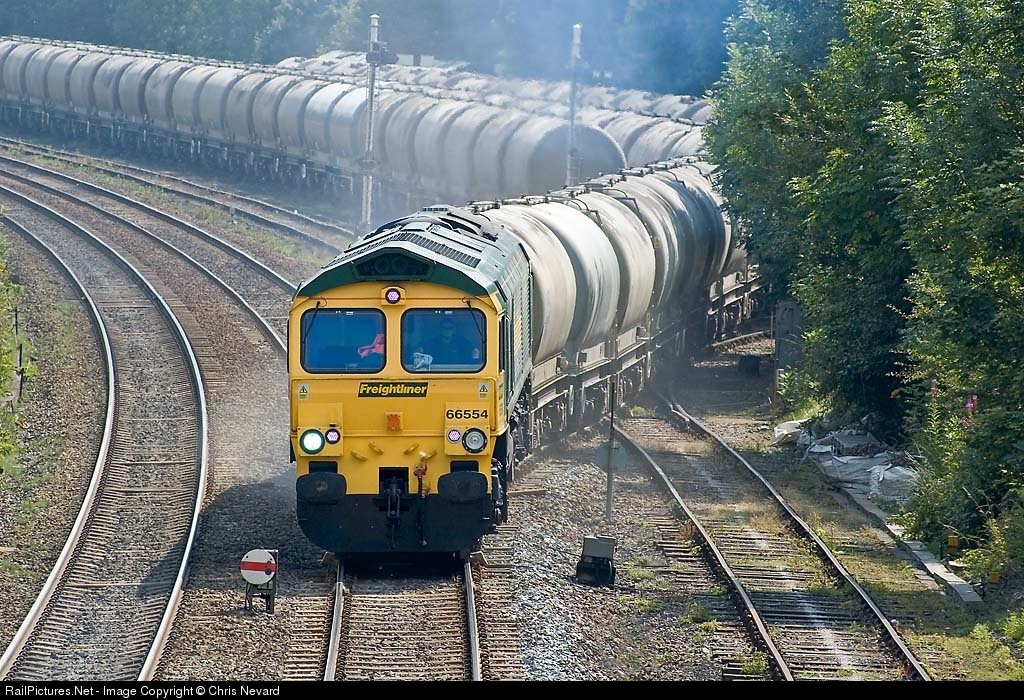 | 66554 pulls the 6J91 Earles sidings-Weaste (Eccles) loaded cement tanks out from the exchange sidings. Earle's Sidings Thursday 18 August 2005 |