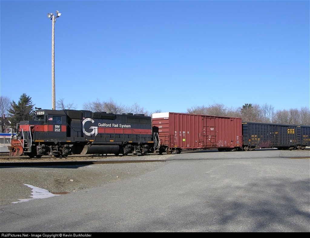 | A 'last of its kind' on Guilford, former Maine Central GP38 252 works the west end of Waterville Yard as train WA-1. The unit has been reassigned to the Boston & Maine and now wears B&M 252 for reporting marks. |
