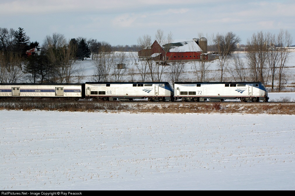 RailPictures.Net Photo: AMTK 72 Amtrak GE P42DC at leaving Columbus, Wisconsin by Ray Peacock