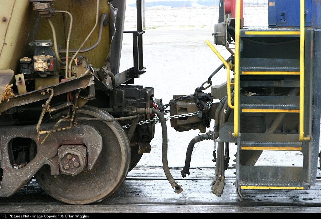 A temporary repair of a broken knuckle after a derail. Engine TPW 4054 moved 4 damaged cars from Macky IN to Oakland City at a blistering speed of 5 mph.