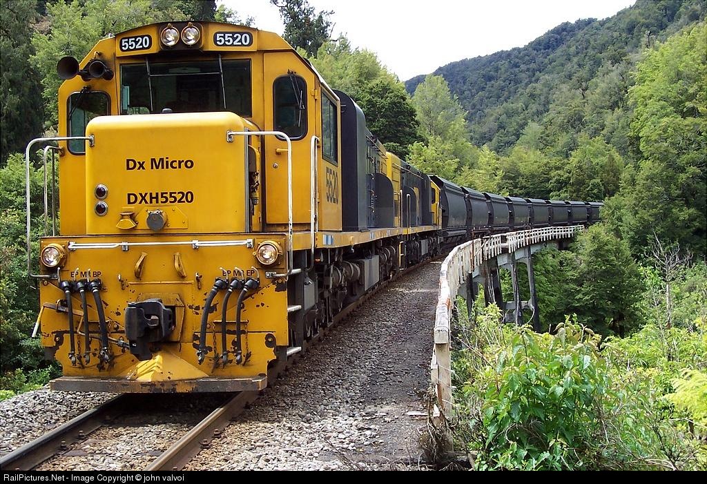 Trains on 3' 6" (1.067m) track from Whangarei to Bluff with virtually heritage rebuilt EMD and GE locomotives still the mainstay power. The network was privatized in 1990's and operated by Toll until 2008 when state owned KiwiRail was established.
