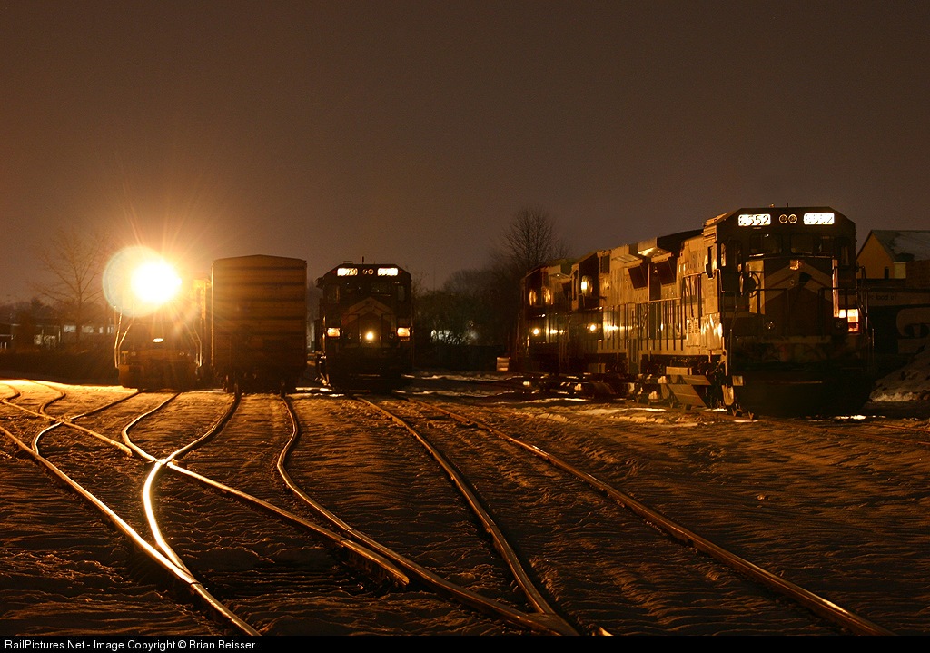CSOR 8552, 8579 and sisters idle in the yard with NECR 3855 behind the headlight. Taken with Canon Digital Rebel.