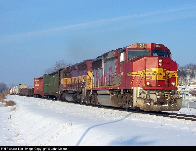 RailPictures.Net Photo: BNSF 104 Atchison, Topeka & Santa Fe (ATSF) EMD GP60M at East Dubuque, Illinois by John Means