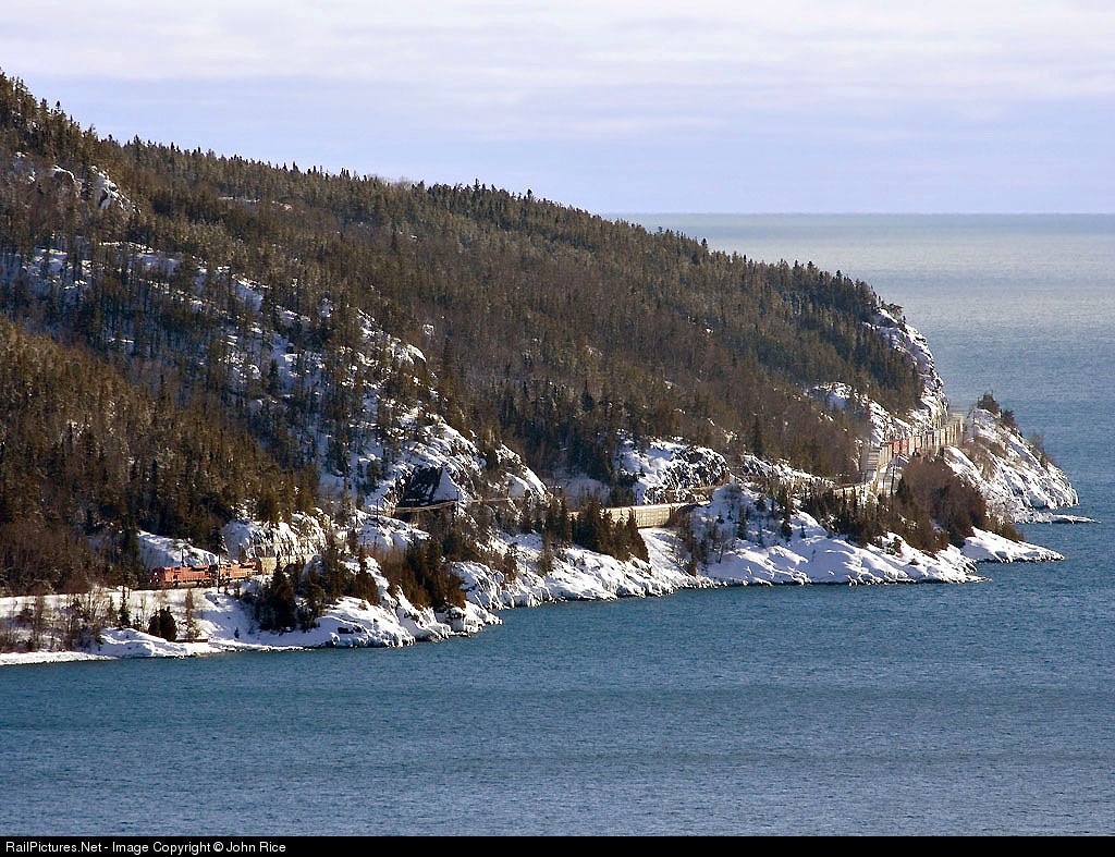 Train 105 snakes it's way through some of the difficult landscape north of Lake Superior.