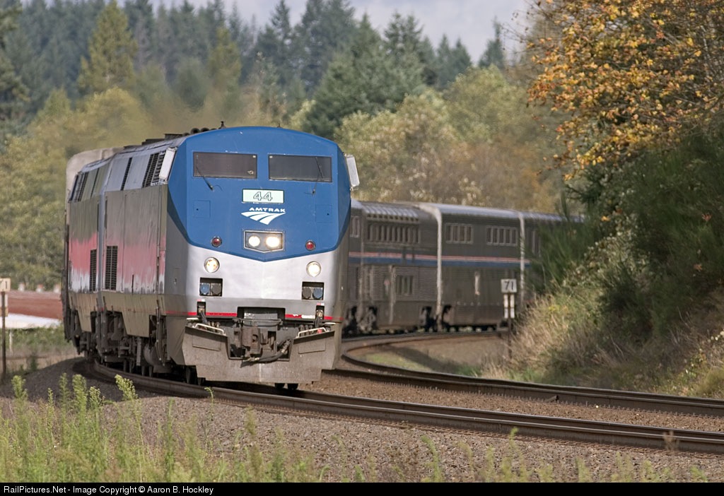 RailPictures.Net Photo: AMTK 44 Amtrak GE P42DC at Winlock, Washington by Aaron B. Hockley