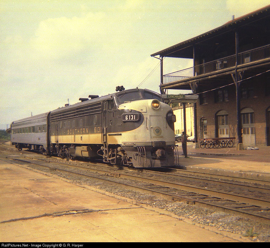 One-car train, #7, arrives at Lynchburg's Kemper St. station. THis was something Southern had to run after Amtrak's creation in 1971. SR did not join initially