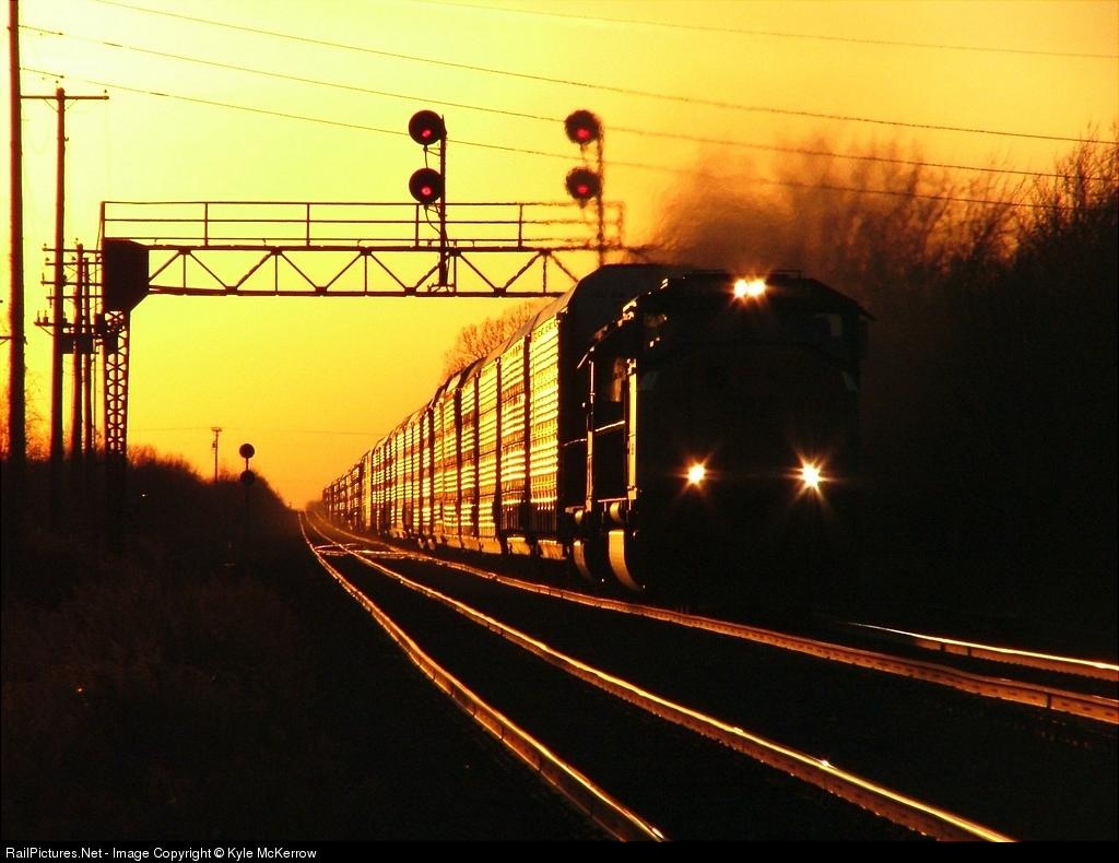 Sunset shot of an eastbound autorack train